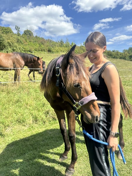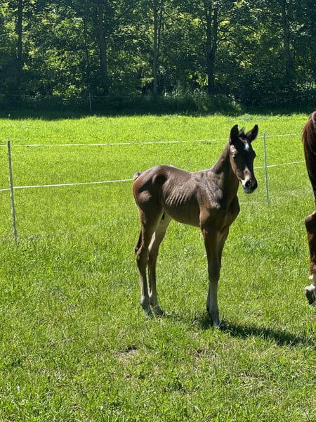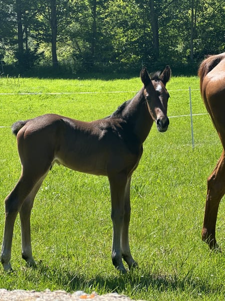 Verkaufe deutsches Sportpferd – Dressurqualität Zum Verkauf steht ein vielversprechender deutscher Sportpferd-Wallach, geboren im Jahr 2024. Das edle Tier besticht durch sein elegantes, dunkelbraunes Erscheinungsbild und seine hervorragenden Bewegungen, die es perfekt für den Dressursport machen. Der junge Wallach zeigt eine vielversprechende Grundausbildung und ist ideal für ambitionierte Reiter, die ein talentiertes Pferd für den Aufbau auf höherem Niveau suchen. Sein angenehmer Charakter und seine Lernbereitschaft machen ihn zu einem zuverlässigen Partner im Training und Wettkampf. Bei Interesse oder weiteren Informationen stehe ich gerne zur Verfügung. Vereinbaren Sie gerne einen Termin für eine Besichtigung und eine Proberunde.