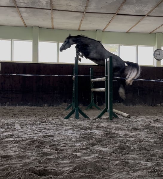 Jeune hongre de 3 ans avec beaucoup de talent pour le saut d'obstacles