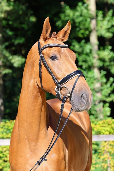 Hier geht's zur Kollektion und Online-Registrierung: https://auktion.pzvbw.de/auctions MwSt. 19 % Großrahmiger Bewegungskünstler am Anfang seiner Karriere und in der Spur seiner erfolgreichen Vorfahren. So war zum Beispiel Großmutter Niobe zweifache DSP Vizechampionesse. Bei seinem ersten Turnierstart platziert im Sächsisch-Thüringischen Reitpferdechampionat. A big framed master of movement at the beginning of his career, he follows in the footsteps of his successful ancestors. His granddam, Niobe, for example, was a two-time DSP Vice Champion. He placed at his first competition in the Saxon-Thuringian Riding Horse Championships