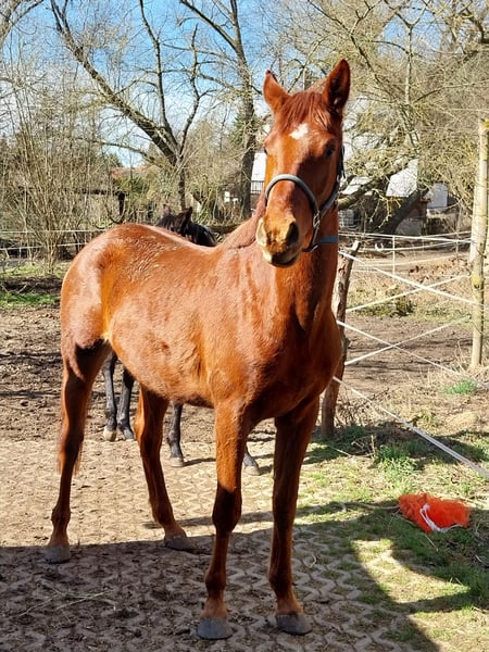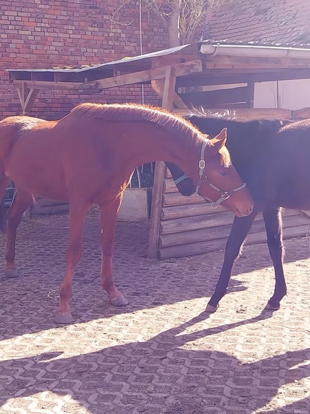 Stiamo vendendo, per la primavera del 2026, un puledro di tre anni, stallone, discendente dal stallone Trakehner Freiherr von Stein (Landgestüt Moritzburg). È cresciuto insieme a un altro stallone, che partirà all'inizio di marzo per la sua nuova casa. Da quel momento, anche Fürst Frederik potrà trasferirsi in una nuova famiglia. Le sue movenze sono energiche, precise nel ritmo e caratterizzate da un naturale equilibrio – una promessa di successo nel dressage. Con il suo carattere molto amichevole e la grande voglia di imparare, è adatto sia a cavalieri esperti che a principianti ambiziosi. Possiede una base corretta, con un posteriore attivo. È molto tipico, lucido, socievole e fin da piccolo è stato sempre sano. Da puledro ha ricevuto il premio per il miglioramento del puledro. Ha già maturato alcune prime esperienze nel rapporto con l’uomo e si dimostra obbediente e collaborativo in tutte le situazioni. Su richiesta, può essere naturalmente anche castrato. Se siete alla ricerca di un partner talentuoso e affabile, ideale per il tempo libero e/o lo sport, saremo lieti di ricevere il vostro contatto e di incontrarvi di persona.
