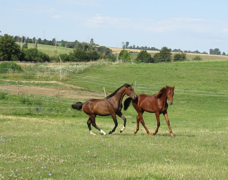 Nous proposons à la vente, au printemps 2026, un poulain mâle de trois ans, descendant du sang du étalon Trakehner Freiherr von Stein (Élevage de Moritzburg). Il est élevé en compagnie d’un autre étalon, qui partira début mars pour sa nouvelle maison. À partir de ce moment, Fürst Frederik pourra également rejoindre son nouveau foyer. Ses mouvements sont fluides, précis au rythme et caractérisés par une harmonie naturelle – un gage de succès futur en dressage. Avec son tempérament très amical et sa grande capacité d’apprentissage, il convient aussi bien à des cavaliers expérimentés qu’à des débutants ambitieux. Il possède une base solide, avec un postérieur actif, est très typé, vif d’esprit et sociable, et a toujours été en bonne santé. En tant que foal, il a été récompensé par une prime de naissance. Il a déjà acquis ses premières expériences en interaction avec l’humain et se montre calme et coopératif en toutes circonstances. Sur demande, il peut également être castré. Si vous recherchez un partenaire talentueux et attaché à l’homme pour la randonnée ou le sport, nous serions ravis de recevoir votre contact et de faire votre connaissance lors d’une rencontre.