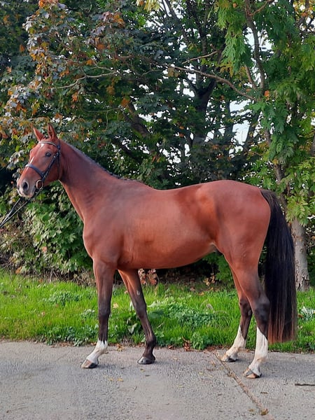 Anfragen werden nur telefonisch beantwortet. Charly ist recht spät geboren und wurde dadurch erst vor kurzem angeritten. Er geht jetzt seit ca. 6 Wochen unterm Sattel und wird 2 bis 3 Mal die Woche geritten. Im Umgang sowie beim Reiten ist er unkompliziert, da er aber noch nicht lange unterm Sattel ist, wird er an keine Anfänger verkauft. Ihm fällt es leicht, neue Sachen zu lernen und umzusetzen. Man kann ihn auch alleine im Gelände reiten. Videos können bei Interesse verschickt werden.