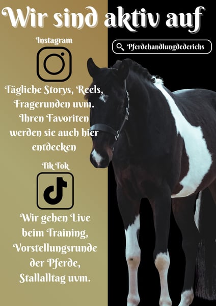 Samenco ist ein 2021 geboreners Deutsches Sportpferd v. Samenco´s Crack, Samber, Lestotho x Viscount, Asculep *Samenco* bringt enormes Vermögen, ein bildschöne Optik sowie ein super Charakter mit sich. Er ist absolut unkompliziert, wird gerade auf das anreiten vorbereitet. Er ist super einfach und sehr unerschrocken und cool bei allem. Hat eine super Technik am Sprung und 3 sehr gute GGA dazu. Ein Allrounder der in beiden Bereichen glänzen kann und dazu für einen tollen Ausritt zu haben ist. Er bringt einen gute AKU mit. Stand problemlos über den Sommer 24/7 im Offenstall auf der Wiese in einer gemischten Herde. Nun wurde er zum anreiten eingestallt, dies ist für ihn auch kein Problem. Longieren, Satteln, Trense, longieren, waschen etc. sind kein Problem. Preis steigend bei weiterer Ausbildung. Pferdehandlung Dederichs – Ihr Partner für den Pferdekauf Kontakt & Erreichbarkeit: Anfragen bitte ausschließlich telefonisch unter 0173/9792139 Montag – Freitag: 09:00 – 18:00 Uhr Samstag: 09:00 – 15:00 Uhr Sonntag: Ruhetag Folgen Sie uns auf Social Media! Erleben Sie unseren Alltag mit den Verkaufspferden auf Instagram, TikTok & Facebook unter Pferdehandlung Dederichs Rabatt: Bei sofortiger Mitnahme Ihres neuen Traumpferdes erhalten Sie zwischen 5 %– 10 % Rabatt Probereiten & Vorführen: • Probereiten: 30 € pro Pferd (max. 2 Reiter), Betrag wird beim Kauf angerechnet • Feiertage: Proberitt 50 € • Vorführung durch unsere Bereiter: 25 € pro Pferd (Vorreiten, Bodenarbeit etc.) Ankaufsuntersuchung & Transport: • Viele unserer Pferde besitzen bereits eine AKU • Sie können selbstverständlich Ihren eigenen Tierarzt mitbringen • Gerne organisieren wir eine Untersuchung • Wir unterstützen Sie auch gerne beim Transport ins neue Zuhause Weitere Verkaufspferde: In unserem Stall stehen weitere Verkaufspferde, die noch nicht online sind. Falls Ihr Traumpferd noch nicht dabei ist, zögern Sie nicht, uns zu kontaktieren. Wichtige Hinweise: • Stockmaß-Angaben sind geschätzt und nicht exakt nachgemessen • Alle Beschreibungen sind subjektive Einschätzungen des Verkäufers und keine zugesicherten Eigenschaften Weitere Informationen finden Sie unter: www.Pferdehandlung-Dederichs.de
