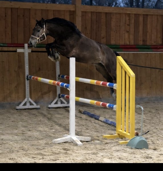 Zum Verkauf steht unser ganz toller selbstgezogener 4 jähriger Wallach von Comme le pere x Clarcon/ Contact me/ Levisto. Er ist bei uns auf dem Hof groß geworden und bisher behütet aufgewachsen. Camiro ist ca. 1.70m groß und ein wirklich korrekter hübscher, sehr lieber Kerl, der jetzt bereit ist für seine sportliche Zukunft. Er zeigt sich bisher unter dem Sattel entspannt und super brav und rittig! Galopp ist schon jetzt super rhythmisch mit tollem aktiven Hinterbein! Er macht wirklich Spaß. Aufgrund unserer Einschätzung wird er für jungpferdeerfahrene Menschen absolut amateurtauglich, da bisher echt unkompliziert in allen Bereichen. Bei weiterer Ausbildung wird er sicher teurer! Aus seinem Stamm bereits 1,50m erfolgreiche Pferde. Sein Onkel ist derzeit unter junger Reiterin sehr ergolgreich bis 1,50m unterwegs. Ein wirklich tolles, vielversprechendes Nachwuchspferd. Freispringen ehrgeizig und mit genügend Vermögen ausgestattet :-) !! Erste Stangen unter dem Sattel bereits überwunden. Auch unter einfühlsanen, fremdem Reiter total fein. Natürlich muss man, aufgrund seines Alters und Ausbildungsstandes schon Erfahrung mit Jungpferden mitbringen. Zum Verkauf steht Camiro ausschließlich, weil wir als Züchter nicht alle behalten können. Camiro ist bereits Chip operiert (im Rahmen seiner Kastration) und geröngt. Zähne sind aktuell gemacht.