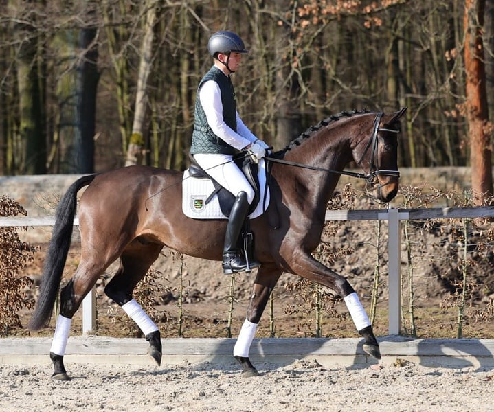Dieses Pferd ist Bestandteil der 12. Verkaufspferdewoche im Landgestüt Moritzburg vom 11.-19. April 2026 mit abschließender Online-Auktion. Fürstentanz ist ein im großen Rahmen stehender Youngster, der durch Ausgeglichenheit und guten Charakter zu überzeugen weiß. Trotz seiner noch jugendlichen Entwicklung kann er durch beste Rittigkeitattribute und sichere Anlehnung punkten. Er bewegt sich immer durch den Körper und verfügt über einen guten Ablauf. Fürstentanz - ein zuverlässiger Partner, auch für den großen Reiter.