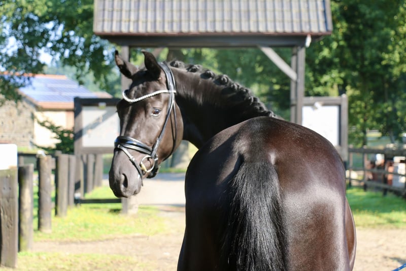 ‼️ Inquiries exclusively via the phone number provided below ‼️ Location: 49509 Recke | Westphalian | Gelding | Black | Born 2022 | 16.1 hh | Sired by Donier out of Franziskus x Paradiesvogel A stunningly presented gelding with three very good basic gaits. The 3-year-old “Donald” not only impresses with his fearless nature and willingness to work but also boasts an exterior that leaves nothing to be desired. “Donald” was backed in July and is very eager and motivated to work. His dam already has offspring successful in riding horse and dressage competitions. With further training, this promising young horse is developing into a high-quality, absolutely performance-oriented prospect. Anyone looking to secure a future star should not miss the opportunity to acquire “Donald.” A current, stress-free X-ray examination, including neck and back images, is available. https://youtu.be/GevPdRrHfDs?si=Ji5RbgJHH2M172h9 For serious inquiries, please contact us by phone at +49 170 7941333.