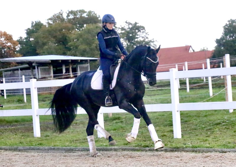 ‼️Solicitudes exclusivamente a través del número de teléfono indicado abajo‼️ Ubicación: Recke, 49509 | Westf. | Macho | Semental negro | *2022 | 172 cm | Hijo de Donier x Franziskus x Paradiesvogel Hermoso ejemplar con tres excelentes movimientos básicos. El potro de 3 años, “Donald”, destaca por su carácter intrépido y su disposición a trabajar, además de contar con una conformación que no deja nada que desear. “Donald” fue iniciado en julio y se muestra muy dispuesto y motivado para el trabajo. Su madre ya tiene cría que ha tenido éxito en concursos de doma y en pruebas de caballos de salto. Con una adecuada promoción, este potro puede convertirse en un caballo de alta calidad, con un rendimiento excepcional. Quien desee asegurar su futuro caballo de cría, no debería dejar pasar a “Donald”. Se dispone de un informe radiológico sin hallazgos, incluyendo radiografías de cuello y espalda. https://youtu.be/GevPdRrHfDs?si=Ji5RbgJHH2M172h9 Para interés serio, por favor, contacte preferiblemente por teléfono al +49 170 7941333.