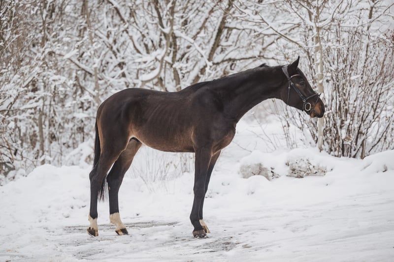 **Sales Advertisement: German Sport Horse** For sale is a promising dark brown gelding from the year 2021. With a height of 175 cm, he is an impressive and athletic partner for sports. This talented gelding shows great potential in jumping and is ready to further develop in the coming years. He impresses not only with his good movements but also with his friendly and sociable nature. If you are interested or have any further questions, please feel free to contact me. Visit us to meet this wonderful gelding!