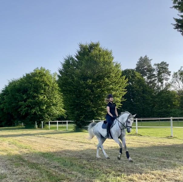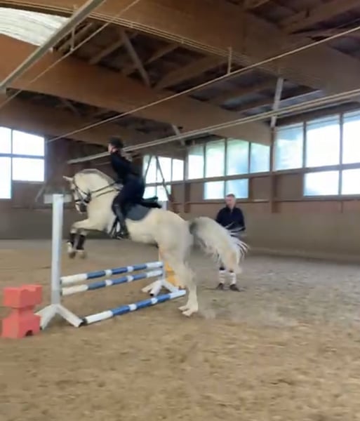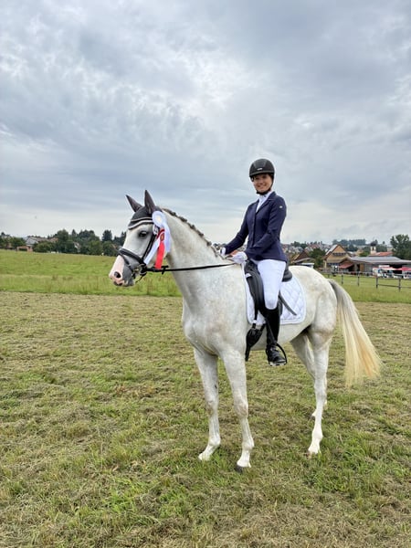 Zu Verkauf steht mein 5 jähriger Schimmel Wallach, Abstammung Vingino x Quiwi‘s Dream. Auf diesem Wege suche ich einen tollen Platz mit mit entsprechender Förderung in der Dressur und im Springen für ihn. Durch seinen super Charakter wäre er auch ein gutes Familien-/ Freizeitpferd. Im Umgang ist er sehr brav und geduldig. In der Dressur bringt er bereits Turniererfahrung mit und ist bis Klasse A platziert. Er ist absolut anständig beim Hufschmied (barhuf), auch beim Verladen und Hänger fahren ist er sehr entspannt. Falls Interesse besteht kann gerne ein Video zugesendet werden.