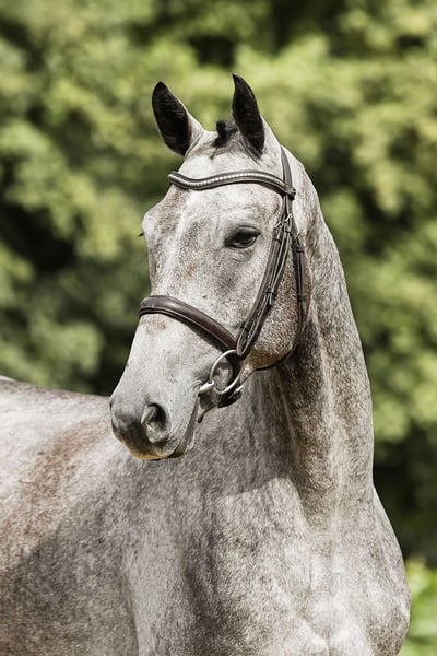 Jeune cheval compact et bien monté.