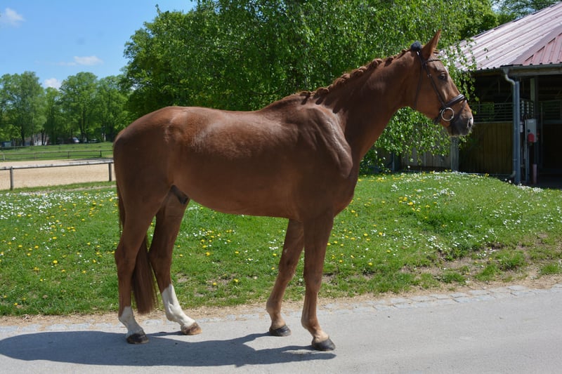 Walentino est un véritable polyvalent. Toujours intrépide, ce jeune hongre se montre motivé lors du travail quotidien. Lors du saut libre, il fait preuve d'une bonne vue d'ensemble et d'une grande joie. Très gentil à manipuler, courageux et toujours gérable, il apporte du plaisir lors du travail quotidien. Des radiographies sont disponibles (03/25). Venez rencontrer Walentino et rejoignez-nous le 14 juillet 2025 pour le Lundi des chevaux de Riem! Dans la Halle équestre Olympia (Landshamerstr. 11, 81929 Munich), plusieurs chevaux à vendre seront présentés à partir de 18 heures. Ensuite, vous pourrez discuter directement avec les propriétaires et éventuellement essayer les chevaux! De la nourriture et des boissons seront fournies, l'entrée est gratuite!