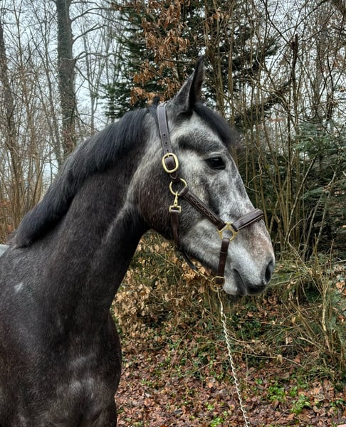 Rakker is a stunning 2021-born gelding standing at 16.1 hh. Not only does he impress visually, but he also has a sweet and gentle temperament. Despite his young age, he is already well-schooled under saddle and can easily be ridden by amateurs. He has a solid basic training, which can naturally be refined further, and this year he competed in his first small show. He was very confident and made a great impression. In the jumping arena, he is not spooky at all and doesn’t shy away from the other side of the course. Thanks to his lively, expressive gaits, we could also imagine him excelling in dressage or eventing. In handling, he is very uncomplicated and affectionate. He is currently barefoot, thanks to his good hoof quality. Rakker has been veterinary-checked and is in good health. If you have any questions or are interested, please feel free to contact me. Videos are available. Please contact only via WhatsApp or call at +49 173 7482545.