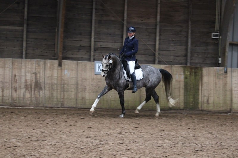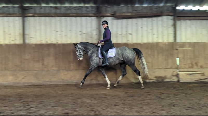 Für diejenigen, die etwas Besonderes suchen Ein äußerst angenehmer, fein bewegender Wallach, 1,63 / 1,64 m groß, kompakt gebaut – das ideale Damenpferd / Übergangspferd vom Pony zum Pferd, um in der Dressur zu glänzen. Sein Vater ist der deutsche Zuchtstamm des Shagya-Hengstes Basalt R, seine Mutter ist vollblütig deutsches Warmblut mit Abstammung von Quarterback (v. Quarterman Brand) x Wolkentanz I. Er ist sehr angenehm zu reiten, hat viel Bewegungsfreude, viel Schwung und Ausdruck. Momentan hat er seine erste L-Dressur absolviert, wir arbeiten an der Verfeinerung und üben gerade einige M-Übungen. Außerdem zeigt er eine gute Springanlage und springt eine kleine Parcoursrunde von ca. 70 cm. Unser Fokus liegt momentan hauptsächlich auf Dressur, daher beschäftigen wir uns weniger mit dem Springen. Ausritte in der Natur liebt er ebenfalls und hat keine Angst vor dem Verkehr, der hier vorbeifährt. Charakterlich ist er ehrlich und freundlich, stets motiviert, etwas zu tun. Besichtigung in Wijk und Aalburg möglich. Alle (Re-)Prüfungen erlaubt.