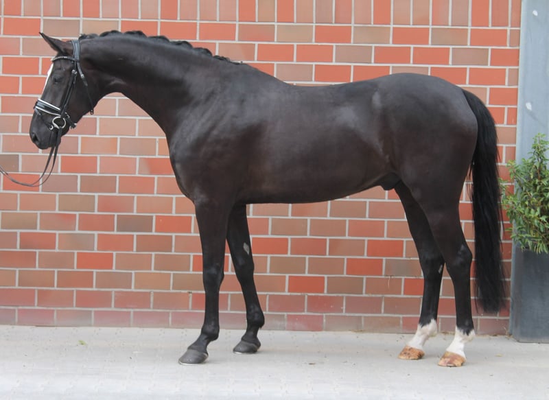 ¡Estamos emocionados de presentar una oportunidad excepcional para los entusiastas de la equitación! Conozcan a nuestro impresionante semental alemán de sangre caliente de 2020, una verdadera joya en el mundo del doma. **Características Clave:** - **Género:** Semental - **Año de Nacimiento:** 2020 - **Color:** Negro Elegante - **Altura:** 170 cm Este semental está ansioso por impresionar en el futuro. Muy trabajador y enérgico.
