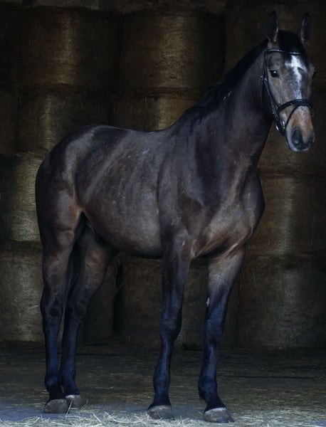 Der 6 jährige, "Mc Fly", abstammend von Mumbai x Cardenio, 1,74 m, ist ein sehr hübscher, mit einer etwas außergewöhlichen Farbe ausgestatteter Wallach. Mc Fly bringt das richtige Maß an Go mit, bleibt dabei jederzeit händelbar und klar im Kopf, am Sprung überzeugt er mit Übersicht und Vermögen. Im täglichen Umgang ist er sehr brav, menschenbezogen, unkompliziert und will alles richtig machen. Mc Fly ist der idealen Kandidaten für jemanden der ein junges Pferd mit einer vielversprechenden Zukunft im Springsport sucht und Erfahrung in der Jungpferdeausbildung hat. Sollte Mc Fly ihr Interesse geweckt haben, können wir gerne ein Kennenlernen bzw. Probereiten vereinbaren. (Gebühr 50€)