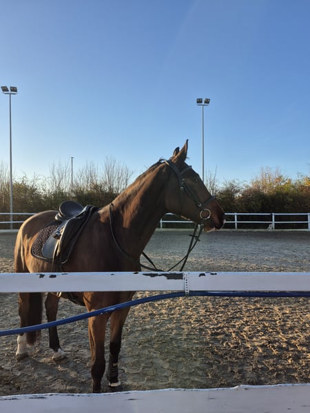 DSP Wallach „Follow your Heart“ aka Franky – 6 Jahre – Fürstenstern x Planitz Kategorie: Wallach | Alter: 6 Jahre | Rasse: Deutsches Sportpferd (DSP) | Stockmaß: ca. 170 cm Disziplin: Freizeit / Dressur / Springen Beschreibung: Leider muss ich mich von meinem Wallach Follow your Heart (Franky) trennen. Franky ist super brav im Umgang– freundlich, verspielt und unkompliziert. Er ist für jeden Spaß zu haben und möchte seinem Reiter gefallen. Obwohl er dressurbetont gezogen ist, zeigt er am Sprung deutlich mehr Begeisterung und Talent. Er wurde bereits auf Turnieren vorgestellt – sowohl in der Dressur als auch im Springen – und hat sich dabei stets brav, ausgeglichen und rittig gezeigt. Franky leidet an einer chronischer Uveitis (periodischer Augenentzündung). Die Schübe lassen sich gut managen und beeinträchtigen ihn reiterlich nicht. Ich wünsche mir für Franky ein liebevolles Zuhause bei Menschen, die ihm mit Ruhe, Geduld und Verständnis begegnen. Gern möchte ich ihn an einen erfahreneren Reiter verkaufen der ihn weiter fördert. Platz vor Preis Bei ernsthaftem Interesse oder weiteren Fragen gerne per Privatnachricht melden.
