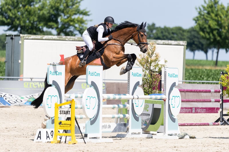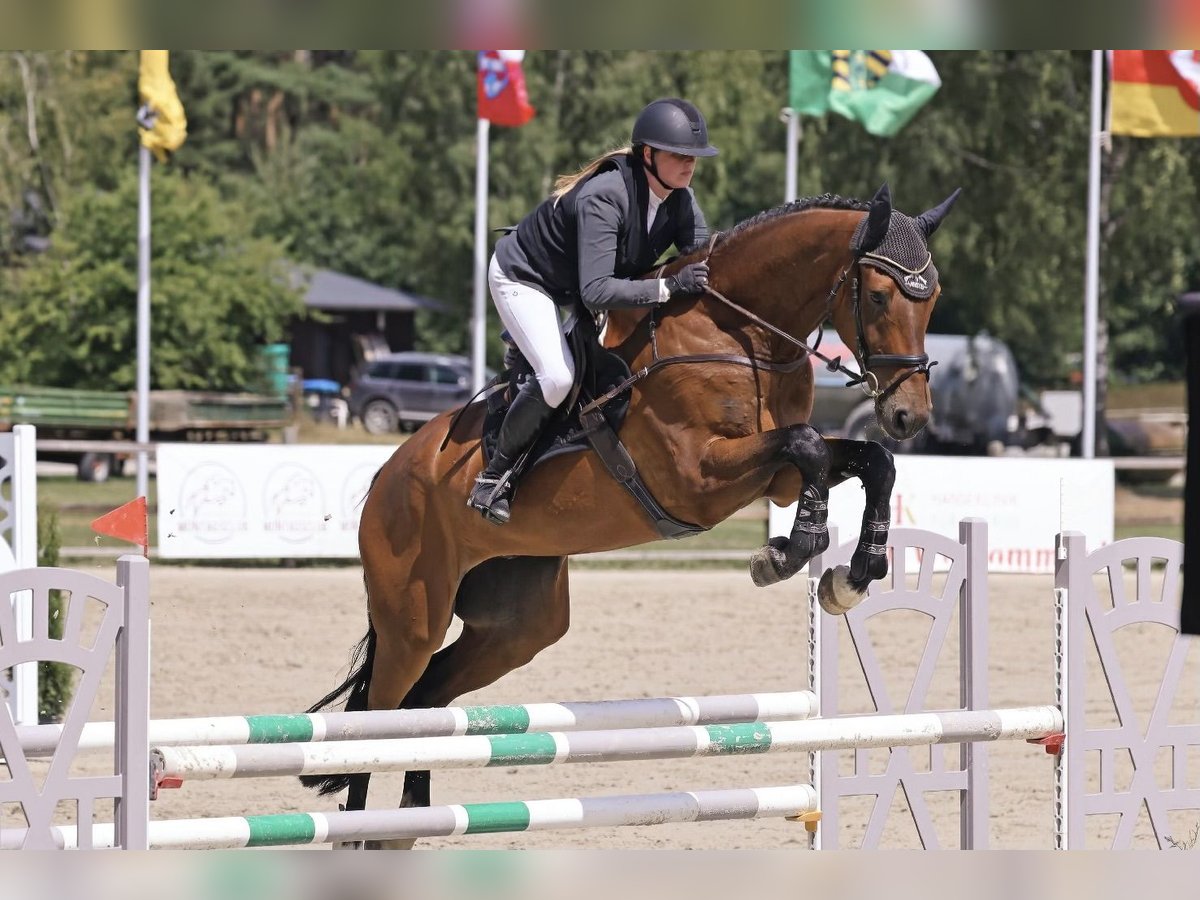 Dieser junge Athlet verfügt über alle Qualitäten, die man für den Spitzensport braucht. Kando hat ein nahezu grenzenloses Potenzial und eine hervorragende Einstellung am Sprung. Er ist sehr fein zu reiten, springt fliegende Wechsel und bleibt bei der Arbeit stets konzentriert. Er wurde erst im Februar 2024 angeritten und befindet sich nun auf dem Weg in die Klasse M**. Er zeigt sich stets brav, freundlich und menschenbezogen. Seine ersten Turniere zeichneten sich durch Coolness, Belastbarkeit und Vorsicht aus, so dass er sich auf Anhieb platzieren konnte. Mittlerweile ist er Springpferde L hoch platziert und M*-Springen mehrfach fehlerfrei gelaufen und platziert. Außerdem hat er sich in der M* (125) Einlaufprüfung für das Bundeschampionat platziert. Er wird von einer Amateurin ausgebildet und gleicht auch eine unpassende Distanz mit Selbstbewusstsein aus. Neue Höhen springt er unbeeindruckt und mit viel Selbstvertrauen. An der täglichen Arbeit zeigt er große Freude und ist immer bemüht zu gefallen. Ein Youngster mit seltener Qualität und starkem Charakter! Röntgenbilder sind ohne Befund.