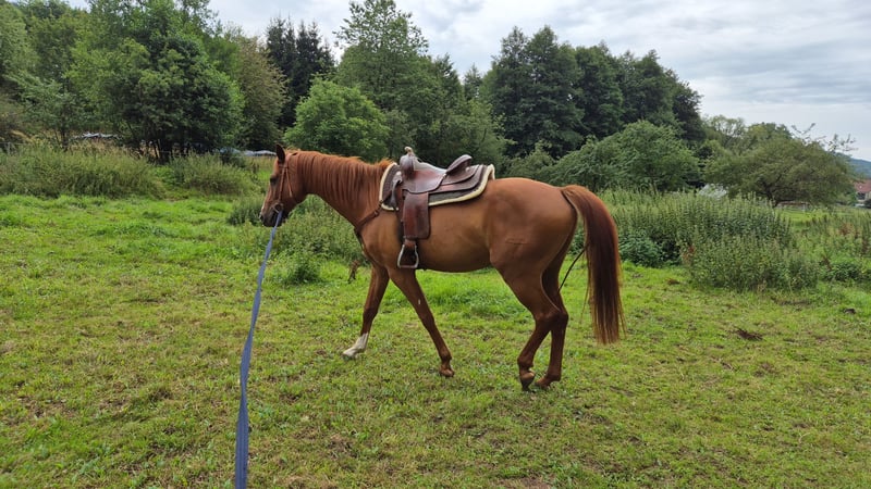 Verkaufe deutsches Sportpferd – ideal für Freizeit und Training Zum Verkauf steht ein wunderschöner, deutscher Sportpferd-Wallach, geboren im Jahr 2018. Er präsentiert sich in einem eleganten Fuchsfell und hat ein Stockmaß von 167 cm. Da er längere zeit stand wird er lediglich als angeritten verkauft. Wurde aber vom vorbesitzer voll ausgebildet. Bei mir wurde er mit westernsattel in schritt und trab geritten da hat man schon gemerkt das er nichts von dem gelernten vergessen hat. Longiert wurde er in allen Gangarten auch hier hat er viel Freude gezeigt und ist immer motiviert bei der Sache und versucht alles richtig zu machen und schnell zu lernen. Verkauft wird er nur weil er bei mir einfach zu kurz kommt und ich nicht die zeit für ihn hab ihn weiter zu fördern. Er hat keinerlei unarten ist immer freundlich offen und für jeden spas zu haben. Er ist Verladefromm regelmäßig beim hufschmied und entwurmt. Er steht zur zeit im offenstall mit 2 älteren stuten da ist er auch Chef. Im sommer steht er 24/7 auf der koppel. Ich würde mir für ihn weiterhin einen offenstall mit koppelgang wünschen wo er einzelprinz ist und die volle Aufmerksamkeit bekommt die er brauch. Wo er vielleicht wieder mehr im Dressur Bereich gearbeitet wird und vielleicht den ein oder anderen Sprung. Kein notverkauf und nur in allerbeste hände. Ausschließlich an Freizeitreiter. Bei ernsthaftem Interesse gerne melden.