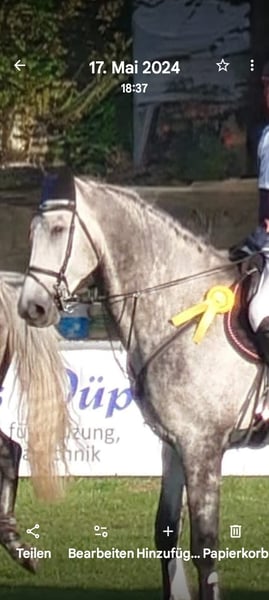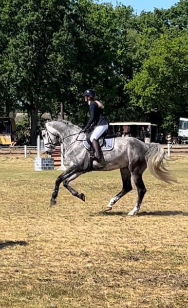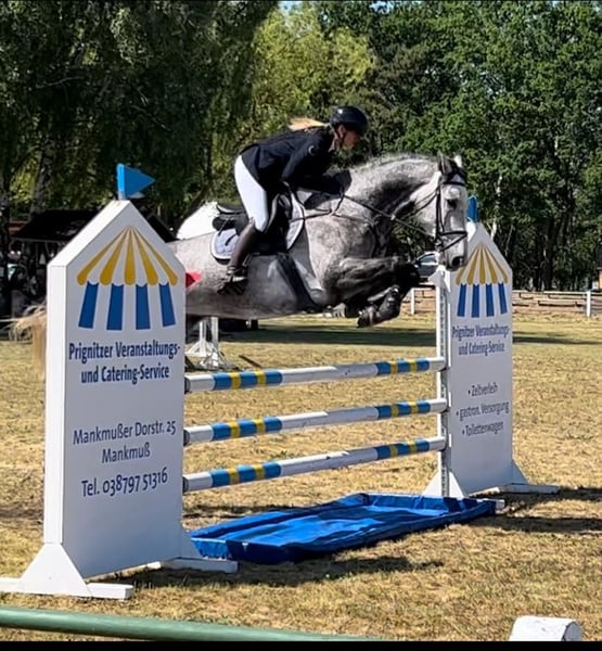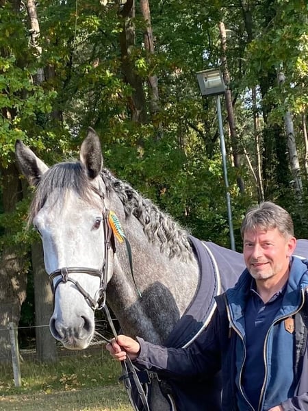 A sus 8 años, Cross Cellest es un experimentado saltador de obstáculos con una cría muy interesante. Este año ya ha ganado una clase de principiantes con una niña de 13 años un concurso de salto de obstáculos con una niña de 13 años y también quedó clasificado con ella el año pasado. Con ella y también conmigo como aficionado, ahora de 57 años, lo he montado hasta el nivel elemental de salto de obstáculos. Desgraciadamente, el año pasado tuve un accidente y desde entonces no he vuelto a montar. Después del accidente, una chica se hizo cargo de la equitación y empezó en algunas competiciones. Como se porta muy bien y es muy amable en el trabajo diario, se han llevado muy bien. Lo que más le gusta es ir a campo traviesa, como se puede ver en la foto. También le gusta saltar obstáculos naturales. Se pueden enviar más vídeos de él montando a campo traviesa por WhatsApp. Por desgracia, a veces es un poco fuerte para la chica en el ring de exposición. Como he decidido no montar más competiciones, es con un corazón pesado que he decidido vender Crossi. Soy un criador aficionado y, como ya he dicho, sólo un jinete aficionado. Tiene mucha habilidad y puede llegar al menos al nivel medio (M) de salto con un mejor jinete. Crossi es un Cellestial de una madre Capriol x Continue. La hermana completa ha tenido éxito internacional hasta 1,50 en los EE.UU., Canadá y México y el hermano completo lo hizo muy bien como un niño de 6 años en su primer medio abierto a finales de abril con un 3er lugar en el salto-off y debe ser promovido aún más. Crossi también tiene mucho potencial y con su 1,73 es también un buen caballo para jinetes altos. Estaré encantado de enviarle más fotos y videos de la bahía. Las dos ultimas fotos y el ultimo video son de los dos hermanos completos que tiene. Muchos caballos de montar internacionales provienen de esta línea de yeguas. Yo mismo he tenido éxito en muchas competiciones de salto con la madre, abuela y bisabuela.