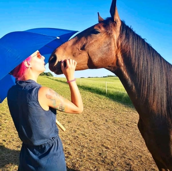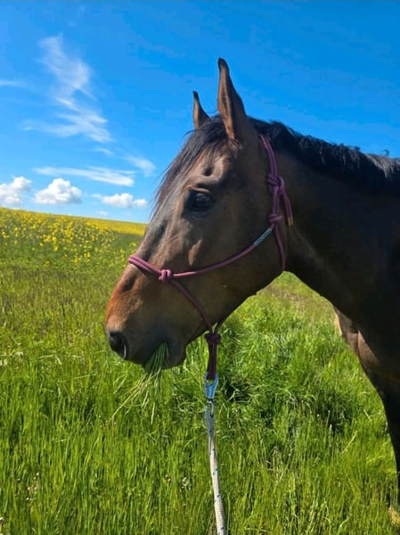 Un caballo de 8 años, yeguo, de deporte alemán, de aproximadamente 1,70 m de altura, busca un nuevo entorno para desarrollar su potencial. Spirit es un potro joven, que ha sido ligeramente iniciado en la monta. Conoce el paso y el trote bajo el jinete, tanto en la cuerda como en libertad en el círculo. Debido a un embarazo, no monté en él desde marzo. Hasta ahora, no ha mostrado ninguna mala conducta bajo la silla. Actualmente, ha sido trabajado muy poco o casi nada, por lo que necesita algo de desarrollo muscular antes de que un jinete pueda volver a montarlo. Spirit quiere agradar y es un caballo con ganas de aprender y de trabajar. Está criado en la disciplina de doma clásica, pero también disfruta saltar (aunque necesita volver a ser introducido en el salto, inicialmente en libertad, sin jinete). Spirit se desplaza descalzo y ha sido revisado regularmente por el herrero. No es su actividad favorita cargar en remolque, aunque esto se debe más a falta de interés que a miedo. Se siente más cómodo en el paddock, pero también está acostumbrado a estar en box durante la noche. Los paseos en solitario no son un problema. Spirit ha demostrado tolerancia a cruzar puentes (que no sean de madera), pasar por debajo de puentes de autopista, a los perros, vacas, otros caballos en las paddocks, ciclistas, niños en patinetes, cochecitos, tractores, trenes y muchas otras situaciones. Para más preguntas o vídeos, no dudes en contactarnos.