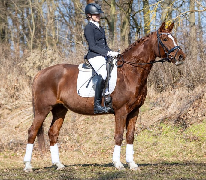 Dieses Pferd ist Bestandteil der 12. Verkaufspferdewoche im Landgestüt Moritzburg vom 11.-19. April 2026 mit abschließender Online-Auktion. Belle Amie ist eine freundliche, dem Menschen stets zugewandte Fuchsstute mit viel Charme. Als Staatsprämienstute stellte sie bereits drei Fohlen und überzeugt somit auch züchterisch auf ganzer Linie. Unter dem Sattel zeigt sie sich leistungsbereit, leichtrittig und angenehm unkompliziert. Erste Lektionen der Kl. L meistert sie souverän und auch ein entspannter Ausritt ins Gelände bereitet ihr Freude. Eine vielseitige und verlässliche Partnerin, die sich sowohl für den Turnier- als auch den Freizeiteinsatz empfiehlt und besonders für den jugendlichen Reiter bestens geeignet ist.
