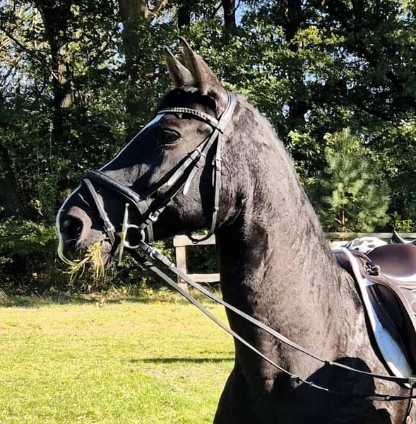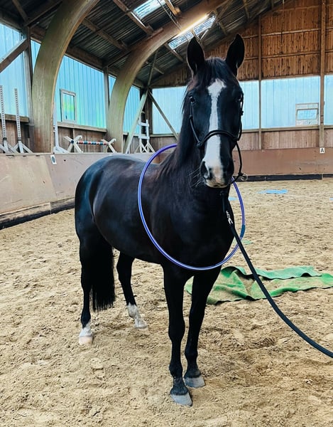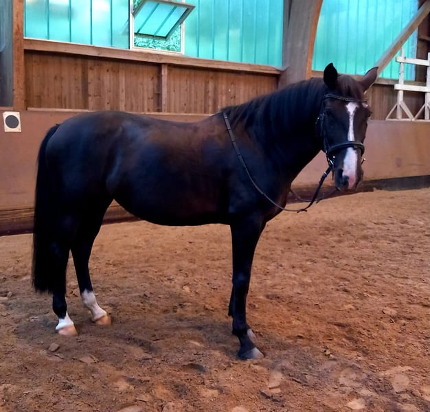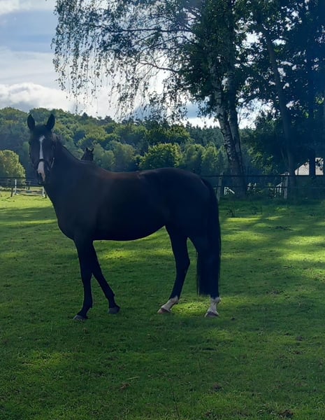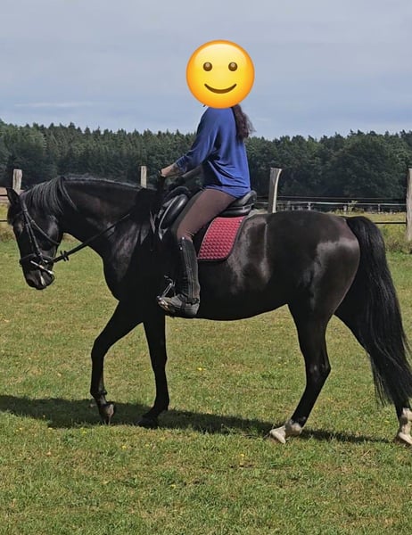 Für meine 10‑jährige Stute Blanka "Blac de Noir", ein deutsches Sportpferd mit sehr guter Abstammung, suche ich ein neues, kompetentes Zuhause. Sie ist 1,62 m groß, gesund, regelmäßig geimpft, zahnärztlich versorgt und barhuf unterwegs. Schmied- und Verladeaktionen meistert sie brav und zuverlässig. 🐴 Charakter & Verhalten Blanka ist eine Stute mit viel Herz, Sensibilität und Ausdruck. Sie braucht jedoch einen erfahrenen, ruhigen Reiter, der ihr Sicherheit vermittelt. Hat sie Vertrauen gefasst, zeigt sie sich als liebes Pferd, das sich auf ihren Menschen einlässt, solange sie klare, ruhige Hilfen bekommt. Sie zeigt keine Unarten wie Steigen, Buckeln oder Beißen. Allerdings ist sie nicht immer unkompliziert: Wenn sie gestresst ist oder sich überfordert fühlt, beginnt sie manchmal zu tänzeln und sucht Orientierung. Mit Konsequenz in Kombination mit einer ruhigen, klaren Art wird dieses Verhalten jedoch zunehmend besser. Sie reagiert sehr positiv auf Menschen, die gelassen bleiben und ihr Sicherheit geben.. 🌿 Ausbildung & Können Früher Jagden gegangen – sie kennt also Trubel und verschiedene Umgebungen, allerdings hatte ich immer den Eindruck, dass solche Situationen für sie eher herausfordernd waren und sie sich in ruhigeren Rahmen wohler fühlt Beherrscht mehr Dressurlektionen, als ich selbst reiten kann Arbeitet zuverlässig, wenn sie Sicherheit bekommt Mag Bodenarbeit und kennt Gelassenheitstraining Im Gelände etwas schreckhaft, daher nur für sichere Reiter geeignet Galopp aktuell noch unausbalanciert, wie auf den Videos zu sehen Nicht für Kinder geeignet 🐎 Haltung Blanka lebt derzeit tagsüber draußen und nachts in der Box innerhalb einer Stutenherde. Diese Haltung tut ihr gut, sie ist sozial und verträglich. Ich kann mir jedoch gut vorstellen, dass auch eine Offenstallhaltung für sie passend wäre 🌸 Zucht – besonders hervorzuheben Blanka bringt eine hochwertige Abstammung mit, die sie für die Zucht sehr interessant macht. Ihre Linien, ihr Exterieur und ihr Charakter bieten eine solide Grundlage für eine spätere Zuchtkarriere. Für jemanden, der ein sensibles, typvolles und korrekt gebautes Pferd mit guter Herkunft sucht, könnte sie eine wertvolle Ergänzung sein. 💛 Warum ich sie abgebe Blanka hat sich im letzten Jahr positiv entwickelt, und ich bin stolz auf die Fortschritte, die sie gemacht hat. Leider lässt meine private Situation mit vier Kindern mir nicht die Ruhe, Zeit und Sicherheit, die sie braucht. Ich selbst möchte rein freizeitmäßig arbeiten und kann ihr nicht immer die konstante Führung geben, die für sie wichtig wäre. 💛 Für wen ist Blanka geeignet? Für jemanden, der: Erfahrung mit sensiblen Pferden hat Freude an feiner Kommunikation und Weiterentwicklung mitbringt Sicherheit ausstrahlt und klare, ruhige Hilfen gibt Ein Pferd sucht, das mit Vertrauen zu einer wunderbaren Partnerin wird Eventuell auch zuchtinteressiert ist