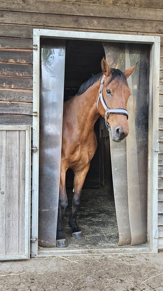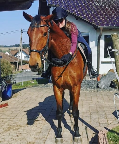 Cerchiamo una nuova casa per la nostra maresina di 10 anni, Maki (Lifedream S), poiché, purtroppo, dobbiamo separarcene per motivi di salute. Maki è un cavallo sportivo tedesco (padre: Lord Noble S; nonno materno: Fashion S) con un aspetto elegante ed è alta circa 1,66 m. È un cavallo molto caratteriale e sicuro di sé, che non si lascia facilmente disturbare dagli stimoli ambientali. Tuttavia, nel rapporto quotidiano, tende a mettere alla prova i limiti e a chiedere spesso attenzione, quindi non è adatta ai principianti. In altri momenti, invece, è una vera coccolona e cerca affetto. In maneggio e in arena è stata montata poco, principalmente al passo e al trotto, poiché talvolta mostra difficoltà in svolte strette, causate da stati dolorosi temporanei che, nonostante diverse sedute dall’osteopata e dal veterinario, non sono ancora stati completamente localizzati. Ha una piccola deformità all’anteriore sinistro a causa di un incidente in pascolo. Maki è abituata al box con accesso al paddock con altri cavalli, conosce la longe, la cura degli zoccoli e il trasporto in trailer. È in possesso di un passaporto equino con le registrazioni delle cure regolari e tutte le vaccinazioni necessarie. La sua idoneità alla monta dovrebbe essere rivalutata, poiché l’ultima monta risale a metà agosto. Alternativamente, può svolgere un ruolo in allevamento o essere mantenuta come cavallo da compagnia. Vendita esclusivamente con contratto di tutela! Priorità al benessere, non al prezzo!