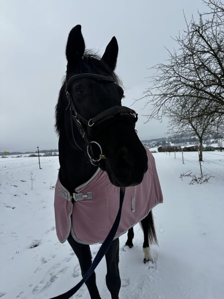 With a heavy heart, I am considering offering my beautiful mare Perla to experienced horse people if the right home is found. She stands 16.1 hh, is 11 years old, and is sired by Lord Nobel out of Fashion S. She is a family member and is familiar with children, strollers, dogs, tractors, and other everyday sights. She has been ridden both in the riding arena and in the indoor school, but she always preferred hacking out. She is not a reliable riding horse and will not be sold as a riding horse, but rather as a companion animal. I will only let her go if she finds a dream home. She is very well-trained in groundwork. I can easily imagine her as a companion horse with plenty of turnout or with someone who enjoys groundwork and does not focus primarily on riding. She has a condition in the cervical spine. Horse experience is essential! She is familiar with box stall housing with turnout and, in summer, 24/7 pasture access. She also knows an open stable. Currently, she is in a herd of mares. She is barefoot. Please only contact me if you are genuinely interested. Priority for the right home over price! My main concern is finding a suitable home for Perla, not the price.