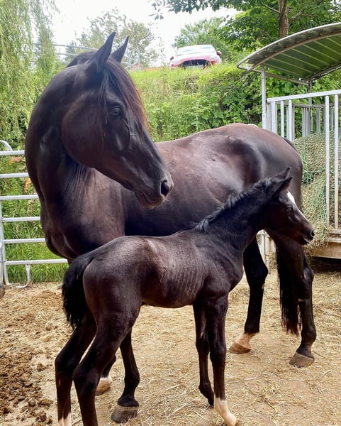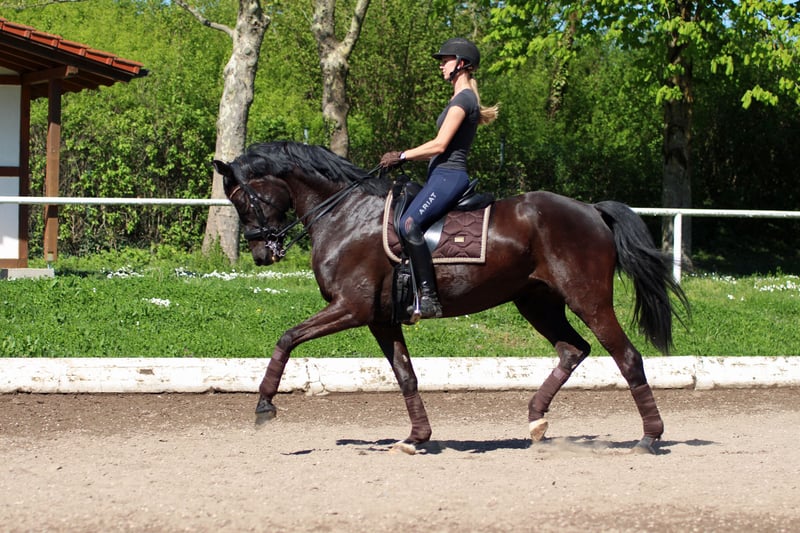 Beautiful Mare Looking for the Perfect Home For sale is a stunning, well-handled 11-year-old dark chestnut mare. She is very calm and friendly in handling, recently even ridden by a 13-year-old girl. Fortunately, she does not display stallion-like behavior around other horses. Under saddle, she has a good amount of energy but has never lost a rider, making her suitable for experienced riders but not for beginners or overly nervous riders. She has been successful in dressage competitions at levels L and L**. She has previously foaled two wonderful foals at ages 4 and 9, including a warmblood-colored foal, making her also interesting for breeders. She has always taken to insemination on the first attempt, had trouble-free foaling, and has been a very caring mother. Since she is somewhat nervous at competitions, I would prefer to rehome her to a leisure rider seeking a high-quality leisure horse for fun. We regularly traveled for training sessions off-site, which was never an issue. She is comfortable riding alone or in a group in the field. She has plenty of go but remains manageable at all times. Last year, Elise underwent a fetlock joint surgery and has since been barefoot and back in training. The surgery revealed no issues. I am happy to provide further details regarding her health upon serious interest. She loves groundwork and greets her handler daily with a nicker. My ideal home for her would be a five-star environment with daily turnout. She is outside all day at my place. She has previously been part of a herd, as well as kept alone, and has adapted well to all situations so far. If you are looking for a motivated, very personable horse for daily riding, Elise could be your dream horse. We look forward to meeting you if you are interested.