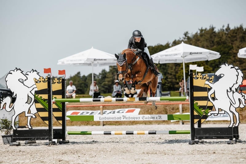 11-Year-Old Chestnut Mare For sale is a stylish 11-year-old chestnut mare. High Heel has been competed by my daughter up to the M jumping level. At her previous owner/breeder, she was also used in dressage and eventing. High Heel is gentle in handling, herd-safe, and easy to shoe and load. She is very ambitious and enjoys gaining some "speed" in the cross-country phase. Therefore, she requires a confident rider when jumping. She is comfortable going alone or in a group, both on the trail and in the field. Our horses are kept from April to October in an open stable with turnout and are also outside a lot during the winter. We are looking for a home with regular turnout.