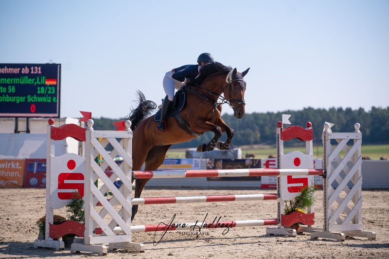 Na sprzedaż 12-letnia westfalska klacz (Question d’Honneur B x Landprinz). Ginette osiągnęła sukcesy do 115 cm i z powodzeniem brała udział w rundach na 120 cm oraz 125 cm. Zachwyca talentem do skoków, a jednocześnie ma wiele pozytywnych cech w codziennym obcowaniu: jest grzeczna, kowalsko i transportowo spokojna oraz zawsze przyjazna w codziennym kontakcie. Jednak pod siodłem nie jest łatwym koniem. Jest bardzo wrażliwa, ma charakter i jest dość uparta. Dlatego nie nadaje się dla początkujących lub niepewnych jeźdźców. Potrzebuje kogoś z doświadczeniem, cierpliwością i radością w obcowaniu z wyjątkowymi końmi, kto będzie gotów się z nią związać i dać jej potrzebną klarowność i bezpieczeństwo. Z odpowiednim jeźdźcem ma ogromny potencjał, a odwdzięcza się dobrą, empatyczną pracą oraz chęcią do skakania. Kto szuka sportowego wyzwania i potrafi docenić konia z talentem i charakterem, może znaleźć w niej wspaniałą partnerkę. W razie zainteresowania chętnie udzielę dodatkowych informacji oraz możliwości zapoznania się.