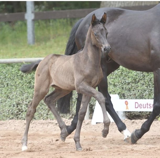 Elegant German Sport Horse Seeking a New Owner This elegant, willing-to-please mare, born in 2013, is a true highlight for any ambitious rider specializing in dressage or for a private breeder. The black-brown state premium mare impresses with her conformation and movement quality, her good rideability, and her strong willingness to learn. She was ridden from ages 4 to 6 and successfully presented in performance tests and basic competitions at shows. Afterwards, she was retired to breeding. She has since produced four foals, all colts in dark coats by Maracanà, Damaschino, Macchiato, and Morricone I. The mare is currently pregnant by Erste Sahne, and the foal is not for sale. Expected foaling date is approximately May 5, 2026. She is offered both as a riding horse and as a broodmare, preferably in private ownership. After weaning the foal in fall 2026, she can be ridden again. There is also the possibility of reconditioning by the estate’s professional rider. Remaining as a broodmare at her current location (breeding farm in the Altmark region) is also an option. She is well integrated into the herd. Artificial insemination, foaling supervision, and foal rearing can be handled by the estate’s staff. The veterinarian is located on-site. If you have any questions, please feel free to contact me with your phone number. I will call back if needed.