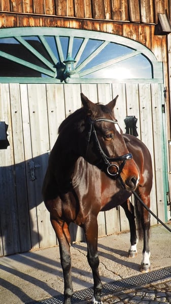 Dark Brown Elegant Mare for Sale - Very well-behaved and gentle in handling - Experienced in riding out and in the terrain - Not suitable as a beginner's horse for riding - Currently barefoot - Awarded the German State Premium Mare title, making her also interesting for breeding - Please feel free to contact us with any questions