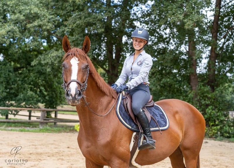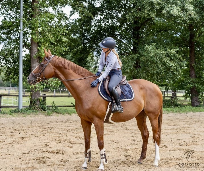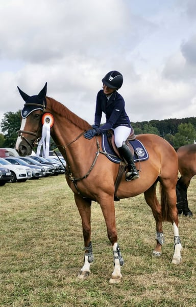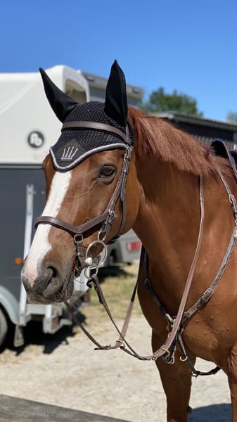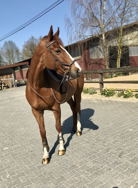 Due to the birth of my daughter, my priorities in life have changed. I no longer have the time I used to dedicate to her. Therefore, it is with a heavy heart that I have decided to sell my mare, "Pippa." I am looking for a loving home for her and will only place her in good hands. She is an absolute sweetheart! Motivated, well-behaved, and easy to ride. Whether in the show jumping arena, indoor riding hall, or out in the field, she brings a lot of joy. She is attentive, never distracted, and always wants to do her best. Solo rides outside are also no problem. At competitions, she remains completely calm and behaves just as she does at home. In jumping, I have competed her up to medium level, and she has successfully placed in L-level competitions. She had a longer competition break from 2020 to 2025 but returned to competition this year, jumping clear in her first event and placing in both A show jumping and A dressage. Regular dental check-ups and farrier visits have always been reliably maintained. I could imagine her best suited for a young rider who wants to start competing or an ambitious leisure rider. Please, no one with ambitions for M-level or higher. Her current training level: A For more information, please contact 0173 3558645 or send a WhatsApp message.