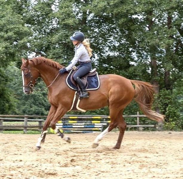 Durch die Geburt meiner Tochter haben sich die Prioritäten in meinem Leben verändert. Ich finde nicht mehr die Zeit wie früher, um ihr gerecht zu werden. Daher habe ich mich schweren Herzens dazu entschlossen, meine Stute „Pippa“ zu verkaufen. Ich wünsche mir für sie ein liebevolles Zuhause und gebe sie nur in gute Hände ab. Sie ist ein absolutes Goldstück! Motiviert, brav und einfach zu reiten. Egal ob im Parcours, in der Halle oder im Gelände. Sie bereitet viel Freude, guckt nicht und will immer alles richtig machen. Alleiniges Ausreiten klappt ebenfalls problemlos. Auf Turnier ist sie total gelassen und verhält sich wie Zuhause. Im Springen ist sie bis M von mir vorgestellt und bis L erfolgreich von mir platziert worden. Sie hatte von 2020-2025 eine längere Turnierpause, ist jedoch dieses Jahr beim ersten Turnier direkt wieder null gegangen und war platziert (A Springen und A Dressur). Regelmäßige zahnärztliche Kontrollen und Schmiedetermine sind natürlich immer zuverlässig erfolgt. Am besten könnte ich mir bei ihr eine junge Reiterin/einen jungen Reiter vorstellen, der/die in den Turniersport starten möchte oder einen ambitionierten Freizeitreiter. Bitte niemanden der Ambitionen für M oder mehr hat. Ihr derzeitiger Trainingsstand: A Weitere Infos unter 0173 3558645 Oder per WhatsApp