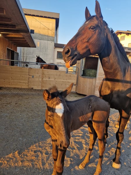 Penelope (genannt Pipi) – 14-jährige Stute mit Top-Abstammung und Herz Unsere liebevolle und erfahrene Stute Penelope, sucht aufgrund von Bestandsreduktion ein neues, wertschätzendes Zuhause. Penelope überzeugt nicht nur durch ihre Qualität, sondern auch durch ihre hochkarätige Abstammung: Vater ist der bekannte Springvererber Chacco Blue, mütterlicherseits führt sie das wertvolle Blut von Weltgeist/Donnerhall – eine hervorragende Kombination aus Vermögen, Rittigkeit und Dressurqualität. Ausbildung & Erfolge: Springen bis Klasse L (Turniererfolge bis 1,15 m nachweislich) Dressur Klasse A hoch platziert L-Dressur gelaufen Pipi war seit ihrer Geburt ausschließlich in einer Hand und kennt daher nur ein konstantes, liebevolles Umfeld. In den letzten Jahren wurde sie aufgrund von Fohlenpause sowie zwei Schwangerschaften der Besitzerin etwas weniger aktiv im Turniersport eingesetzt. Sie ist daher nicht „verbraucht“, sondern bringt weiterhin Motivation und Leistungsbereitschaft mit. Charakterlich besticht sie durch ihr ehrliches, kinderfreundliches Wesen. Sie ist brav im Umgang, zuverlässig unter dem Sattel und eignet sich ideal für Jugendliche oder ambitionierte Nachwuchsreiter, die sowohl im Springen als auch in der Dressur gefördert werden möchten. Gleichzeitig ist sie ein absolutes Pferd zum Liebhaben. Eine TÜV-Untersuchung vom Dezember 2025 liegt ohne Befund vor. Bei ernsthaftem Interesse freuen wir uns über eine persönliche Nachricht, um alles Weitere persönlich zu besprechen.