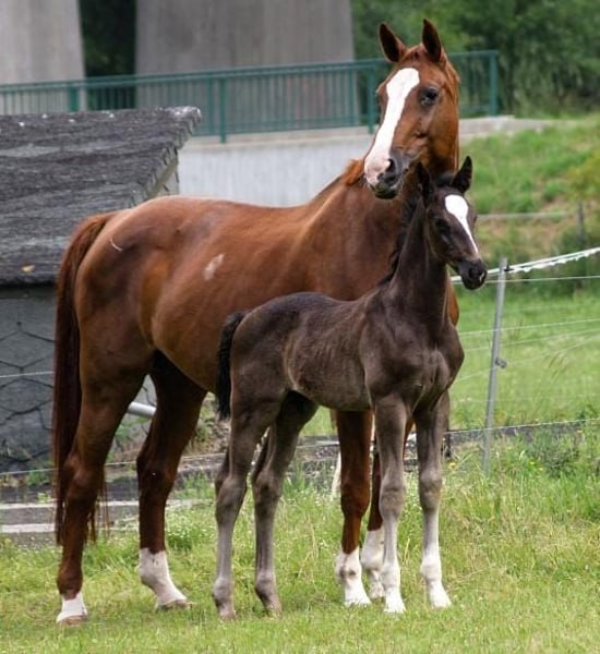 In vendita una fattrice di proprietà della nostra famiglia, proveniente dalla nostra scuderia di allevamento. Imana è una femmina di 15 anni, completamente addestrata e versatile. Nel corso della sua carriera ha ottenuto grande successo sia in ambito sportivo che come cavalla da riproduzione, motivo per cui porta il prefisso DSP. Ha completato senza errori le gare di salto ostacoli fino a S e ha ottenuto risultati fino a M**. Con una giovane amazzone ha superato diverse prove di attestati di equitazione, si è piazzata in dressage di livello E e A e ha vinto fino a salto A. Grazie alla sua ottima conformazione generale, ha vinto numerose prove di salto per cavalli giovani già a tre anni. Ha ricevuto un’educazione molto solida e padroneggia con sicurezza esercizi come le supplenze, il galoppo laterale e i cambi di galoppo volanti. Come fattrice ci ha regalato sempre puledri sportivi, grandi e con lunghe gambe, dotati di eccellenti caratteristiche caratteriali. È una madre molto affidabile, le nascite sono sempre avvenute senza complicazioni. Imana è sicura in terreni accidentati, mansueta, adatta alla vita in branco, e è rispettosa del ferratura e del carico sul camion. Desideriamo trovare per Imana una famiglia che possa offrirle una bella sistemazione, magari come insegnante o per continuare a valorizzare le sue qualità da riproduttrice. A causa del suo successo come produttrice di ottimi discendenti, la cediamo solo a persone di assoluta fiducia. Per evitare il turismo equestre, chiediamo una quota di 30 € per ogni prova di monta, che verrà detratta dal prezzo di vendita.