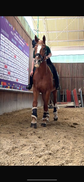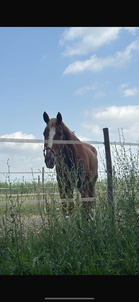 Stine est une jument très douce, dotée d'une grande aptitude au travail. Elle est bien dressée avec l’homme et s’entend bien avec les autres chevaux. Elle n’a peur de rien, est compétente en ferrure et en tonte. C’est une bonne jument pour le voltige, également performante en dressage montée et pour quelques petits sauts. Elle travaille bien même avec des débutants. Elle a passé une bonne visite vétérinaire. Elle présente quelques marques de petites écorchures datant de sa jeunesse, mais cela ne lui cause aucun problème. Elle est vendue car elle n’est pas beaucoup utilisée en raison du grand nombre de chevaux dans l’écurie.