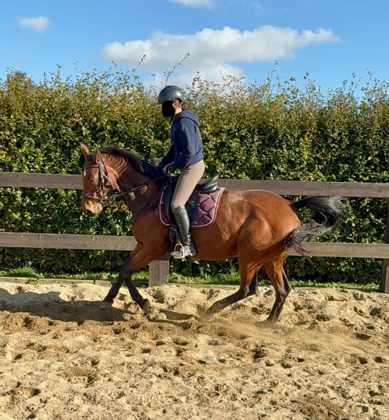 Te koop staat een Duits sportpaard, een 17-jarige merrie van ongeveer 1,67 m met volledige afstamming in haar paspoort (Amantus x Korsine). Ze is in topconditie en wordt momenteel regelmatig bereden. Ze is makkelijk te rijden en toont zich zeer braaf tijdens het werk. Ze gaat gemakkelijk in aanspanning en heeft vroeger ook op concoursen gelopen. Ook in omgang is ze absoluut braaf en altijd zonder problemen handelbaar. Ze is niet schrikachtig en relatief ontspannen. Geen ziekten of allergieën bekend. Een hoefsmidkeuring (AKU) mag gerust worden uitgevoerd. Voor proefritten, voorritten of andere proefmomenten rekenen wij €35. Dit bedrag wordt bij aankoop verrekend. Graag bellen of een bericht sturen naar 0157 36803742. Alle gegevens zijn zonder garantie, prijswijzigingen voorbehouden, transport mogelijk, online aankoop mogelijk.