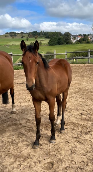**Verkaufsanzeige: Deutsches Sportpferd** Zum Verkauf steht eine talentierte Stute aus dem Jahr 2025. Dieses wunderschöne, braune Deutsches Sportpferd hat ein geschätztes Endstockmaß von 170 cm und eignet sich hervorragend für den Springsport. Dieser Stute stehen genetisch alles Türen offen, ihre Mutter, eine Tochter des Comme il faut aua einem sehr gutem Mutterstamm war selbst nur kurz im Sport aktiv, kann aber dennoch Erfolge bis zur schweren Klasse vorweisen. Bei Interesse oder weiteren Fragen stehe ich Ihnen gerne zur Verfügung. Besichtigungen sind nach Absprache möglich. Lassen Sie sich diese Gelegenheit nicht entgehen, ein vielversprechendes Pferd für Ihre sportlichen Ziele zu erwerben!