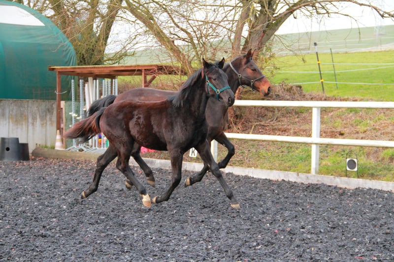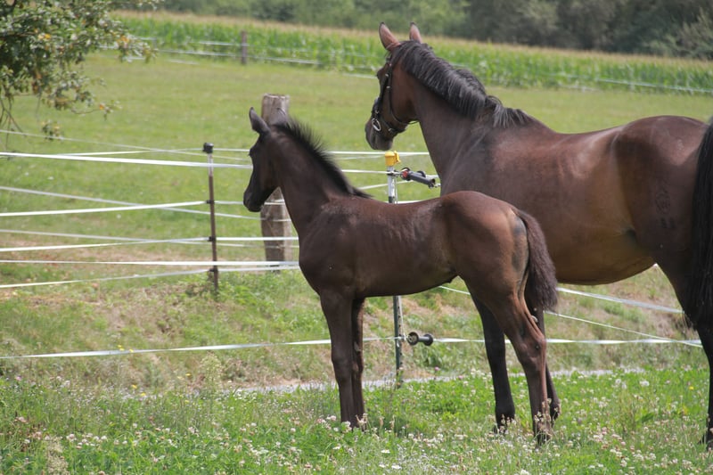Wir bieten hier ein hübsches, bewegungsstarkes Stutfohlen mit allerbestem Charakter an, sie ist selbstbewusst und mutig, sehr lieb und verschmust - und sie freut sich immer wenn der Mensch kommt. Tiana besticht außerdem durch ein absolut korrektes und stabiles Fundament und 3 völlig klare und korrekte GGA, wodurch die besten Voraussetzungen für lange Gesundheit und Haltbarkeit gegeben sind. Mutter und Halbschwester können besichtigt werden und bestätigen dies, ebenso wie der Halbbruder der letztes Jahr gekört wurde! Beide Geschwister waren auch super brav und unkompliziert beim anreiten! Tiana wurde am 14.06.2025 geboren und war bereits mit knapp 5 Wochen auf der Fohlenschau - das hat sie total brav gemeistert und trotz des jungen Alters bereits die Silberprämie vom Verband erhalten! Sie ist natürlich halfterführig, kennt das Fohlen-ABC und ist mit ihrer Mutter zusammen schon Hänger gefahren. Auch die ersten Ausritte bei Fuß ihrer Mutter hat sie schon völlig souverän und unerschrocken gemeistert. Geschätzt wird sie ca. 170cm groß. Im Moment wächst sie in der Herde auf, ist nachts im Stall, aber tagsüber jeden Tag bei Wind und Wetter draußen. Wir wünschen uns eine liebevolle und artgerechte Aufzucht und können sie uns später in verschiedenen Bereichen vorstellen, wobei ihr das Dressurtalent von ihrem Vater natürlich in die Wiege gelegt ist. Bei Bedarf kann sie auch ins neue Zuhause gebracht werden. Standort ist 69151. Gern einfach melden und vorbeikommen, hier wächst eine ganz tolle junge Dame heran!