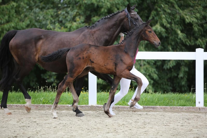 For sale is a filly by Vagabond, who has been successful in show jumping with Hendrik Sosath at high levels. This young mare impresses with her large frame and solid build, showcasing beautiful movement through her body, particularly her powerful gallop. Her exceptionally pretty head completes the overall picture. Her mother, Weissa Colett, has already produced promising offspring, with the first currently competing in sports. Her maternal grandfather, Casiro, not only impressed with his own performance (e.g., winning a puissance class over 2.10m) but also with his rideable, clear-minded offspring. The foal comes from the Weissena line, which is particularly known for the dressage star Weihegold OLD.