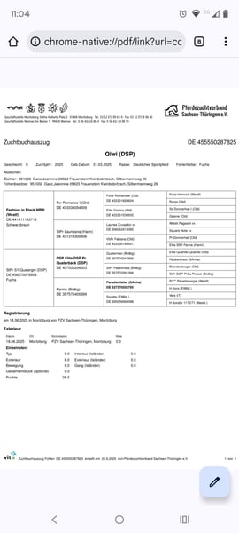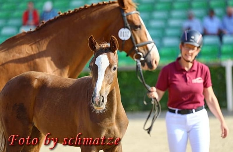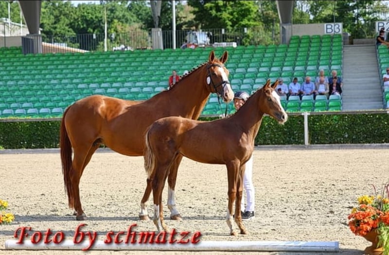 Wir geben noch ein mega Stutfohlen von 2025 ab. Abstammung: Fashion in Black(For Romance x Laurice Crusador) x Quaterback x Paradiesfalter. Fuchs, wird über 1,70m Championatsfohlen mit 9/8/9 in der Bewertung Geimpft,entwurmt und dem Schmied regelmäßig vorgestellt. Mutter ist Staatsprämienstute und stellte bereits mehrere Auktions und Championatsfohlen.