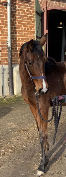 Jument de 2 ans au typé agréable, dotée de bonnes allures de base