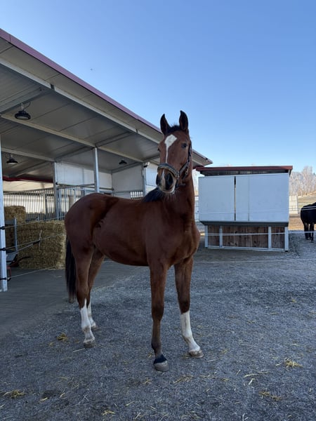 For sale: German sport horse – mare, born 2024 We are offering an elegant and promising German sport mare born in 2024. She impresses with her height of 168 cm at the withers. She is raised at our home and is handled daily in a small herd, making her very friendly and accustomed to everyday life. She is lively and quick to learn, making her well-suited for future jumping sport. Additionally, she is a striking individual—beautiful, tall, and modern, just as one would expect. Her sire, Casallco, is an increasingly successful licensed stallion at the Schockemöhle stud farm. He has competed in show jumping up to 1.60 m and has achieved placings. Her dam is a descendant of Cornet Obolensky, who also has numerous achievements at 1.60 m. He is one of the most successful sires of our time. The mare not only possesses modern quality but also comes from a strong bloodline through her dam line, tracing back to Pilot and Landadel. Two of her siblings are already competing successfully in sport. Please contact us if interested!