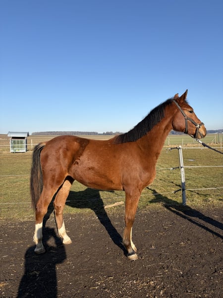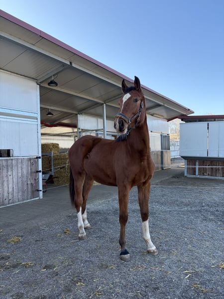 Verkaufe deutsches Sportpferd – Stute, geb. 2024 Zum Verkauf steht eine elegante und vielversprechende deutsche Sportstute, geboren im Jahr 2024. Die Stute zeichnet sich durch ihre beeindruckende Größe von 168 cm Stockmaß aus. Sie steht bei uns Zuhause und wird von uns selbst in einer Kleingruppe aufgezogen und ist deshalb sehr umgänglich und ist jegliche Alltagserfahrung gewöhnt. Sie ist sehr lebendig und lernfähig, weshalb sie sich sehr gut für den späteren Springsport eignet. Zudem ist sie eine Erscheinung, sie ist hübsch, groß und modern, alles was man eben erwartet. Ihr Vater Casallco ist selbst ein immer mehr aufsteigender Deckhengst in der Deckstation Schockemöhle und ist schon 1,60m Springen gegangen und platziert. Ihre Mutter ist ein Nachkommen des Cornet Obolensky, der ebenso zahlreiche 1,60m Erfolge vorzuweisen hat. Zudem ist er einer der erfolgreichsten Deckhengste unserer Zeit. Allerdings besitzt die Stute nicht nur moderne Klasse, sondern kommt auch über die Mutterlinie mit einer echten Blutlinie über Pilot und Landadel zurückgehend. Bereits Zwei von ihren Geschwistern gehen bereits erfolgreich im Sport. Bei Interesse gerne melden!