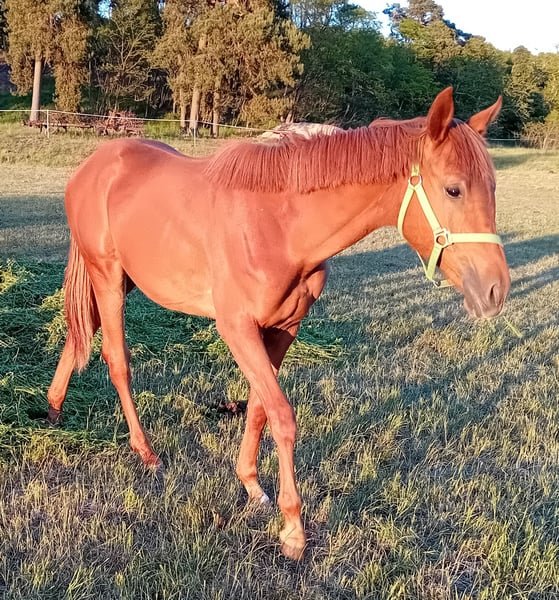 Zum Verkauf steht eine elegante 2-jährige Stute von Comanchero (v. Comme Prèvu - dem Dreiviertelbruder zu Comilfo Plus (Christian Ahlmann)) aus einer Halbblutstute von Chap I (v. Cellestial), welche sich locker und leichtfüßig in der Bewegung zeigt. Die junge Dame (geb. 04/2024) besticht nicht nur durch ihre beeindruckende Erscheinung in besonders schicker fuchsfarbener Jacke sondern auch durch ihren Charme und liebenswerten Charakter. Vater Comanchero, der bei den Oldenburger Hengsttagen 2021 gekört wurde, präsentiert sich ausgestattet mit großer Übersicht, unendlichem Vermögen und voller Kraft. Seine raumgreifende Galoppade und sein schicker Typ machen ihn zum absoluten Hingucker. Gepaart mit bester Rittigkeit und Einstellung ist er auf Hof Sosath die große Hoffnung für den schweren Springsport. In seinem ersten Turnierjahr gewann Comanchero mit 8,6 die Einlaufprüfung zum Championat der vierjährigen Springpferde in Rastede und platzierte sich im Finale in seiner ersten Springpferde L. Den Kurz-Veranlagungstest in Vechta absolvierte er als bester vierjähriger Hengst mit der Gesamtnote 8,44. 2023 qualifizierte sich Comanchero für das Bundeschampionat und platzierte sich in Springpferdeprüfungen bis zur Klasse M. 2024 konnte Comanchero an die Erfolge des letzten Jahres anknüpfen und sich mehrfach in Springpferdeprüfungen der Klasse M mit Wertnoten bis 8,7 hochplatzieren. Er qualifiziert sich außerdem in Westergellersen für das Bundeschampionat der sechsjährigen Springpferde. Im Rahmen der Oldenburger Hengsttage 2025 wurde Comanchero zum Hauptprämiensiegerhengst des Springpferdezuchtverbandes Oldenburg-International gekürt. Weitere Informationen zum Vater befinden sich unter: https://sosath.com/de/hengste/detail/comanchero Der älteste Nachkomme der Mutter war bereits in Youngster-Prüfungen bis 1,35 m Springen erfolgreich unterwegs und wurde in die USA verkauft. Caleas Mutter vererbt ihren Nachkommen Vermögen und eine sehr gute Technik am Sprung sowie besonderen Schick. Erfolgsstute Chakaria (2024 siegreich im Rolex Grand Prix in Aachen) von Europameister André Thieme hat ebenfalls Chap I als Vater.