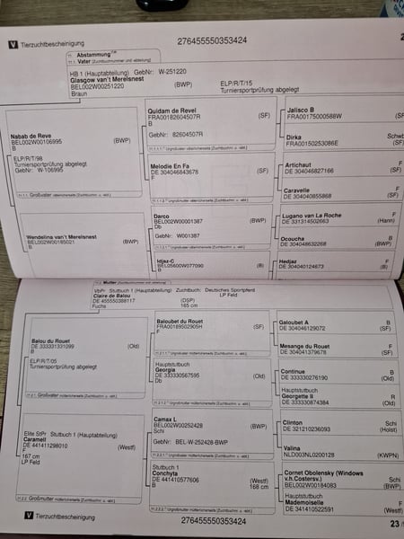Due to lack of space, I am selling my nearly 2-year-old mare with great potential into caring hands. Caramia is raised in a small herd with young horses and broodmares. She is regularly handled by the blacksmith and is very friendly. She is sired by Glasgow van't Merelsnest and comes from a dam line featuring Balou du Rouet × Camax L × Cornet Obolensky.