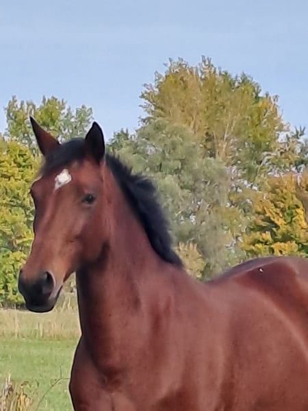 Dunkelbraunes Stutfohlen 2024 von Hans Heinrich aus einer Balous Bellini x Feuerwerk x Zeus Stute. Diese ist leistungsgegrüft 8.2 mit hervorragenden Charakter, die Sportlichkeit und Rittigkeit vereint. Geboren am 16.06.2024 – kompakt, elastisch, ausdrucksstark und voller Power! Schon jetzt zeigt sie Leistungsbereitschaft, Intelligenz und beste Bewegungsqualität – ein echtes Nachwuchstalent für den gehobenen Sport. Nur in beste, fördernde Hände abzugeben