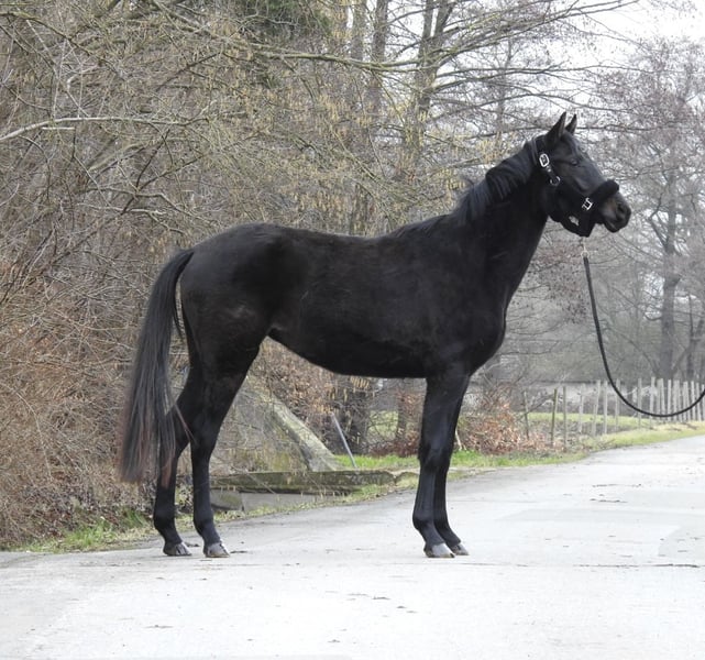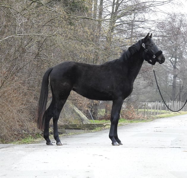 ❗️Wir bitten aufgrund des hohen Schreibaufwandes ausschließlich um telefonische Anfragen.❗️ Zum Verkauf steht eine 3-jährige Rappstute mit einem derzeitigen Stockmaß von ca. 1,55 m. Die Stute stammt direkt aus Züchterhand und lief bis zuletzt in einer kleinen Jungpferdeherde / Laufstall. Sie ist zwar noch relativ grün, zeigt sich im Umgang aber sehr unkompliziert und dem Menschen zugewandt, so dass man sie bereits problemlos führen und putzen kann. Aufgrund von Bestandsreduzierung und Platzmangel wurde sich nun kurzfristig für einen Verkauf entschieden. Ohne vorherigen telefonischen Kontakt werden wir keine Videos unserer Pferde verschicken, daher bitte von Anfragen „bitte Video schicken“ absehen. Besichtigungen sind jederzeit möglich. Für weitere Fragen stehen wir gerne telefonisch unter 0171 530 33 40 zur Verfügung. Alle Rechte an den Bildern gehören Sport- und Freizeitpferde Wilfried Oestersandforth. Eine Verbreitung oder Veröffentlichung ist strikt untersagt.
